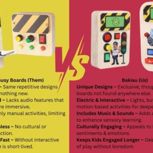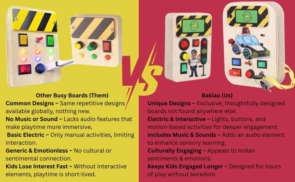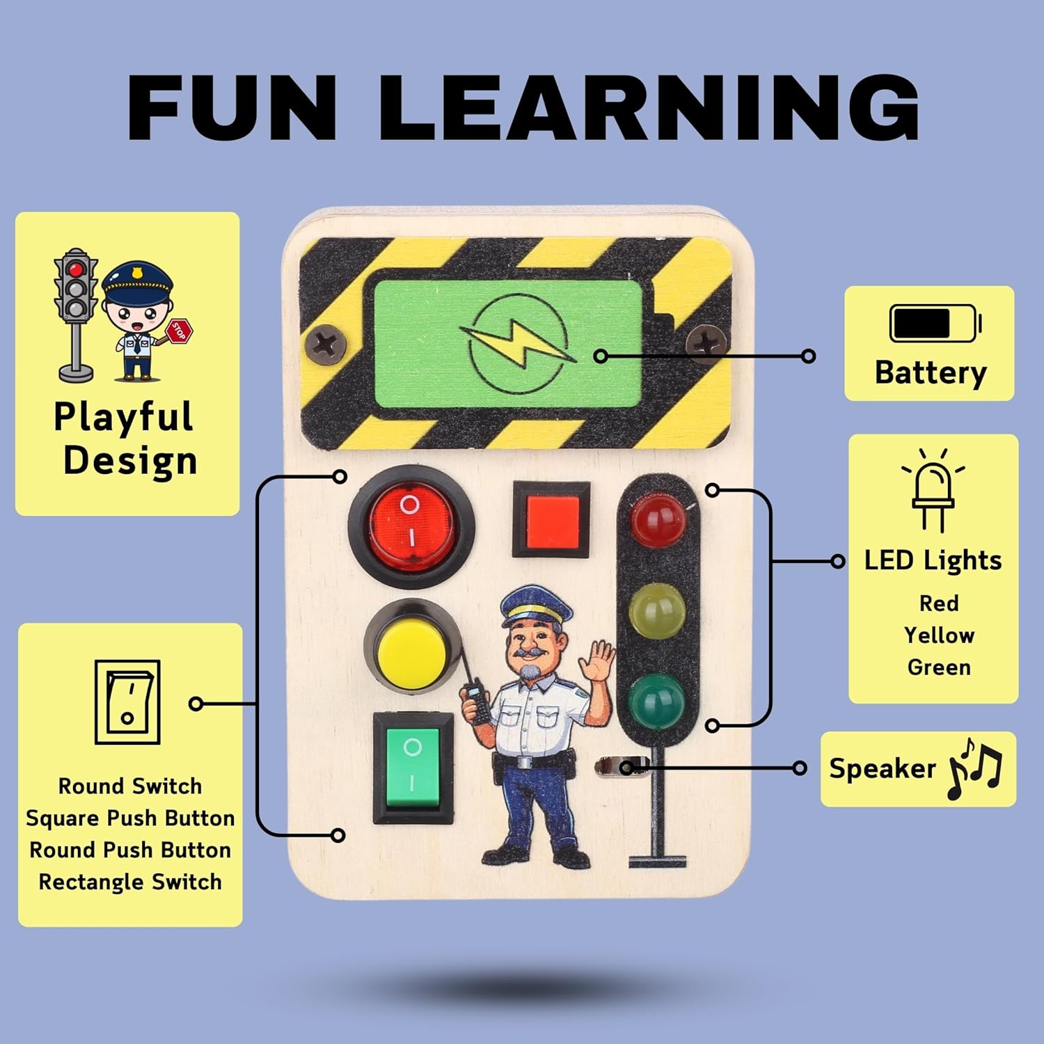 - 💡 4 Switches + 3 LED Lights + 1 Rhyme Switch – This interactive busy board combines tactile switches, glowing LED lights, and musical fun, enhancing cause-and-effect learning and auditory engagement