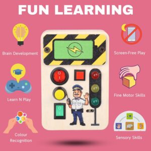 - 🚦 EDUCATIONAL VALUE: Develops fine motor skills, colour recognition, and cognitive abilities through hands-on exploration of various controls traffic signals on a compact wooden board for engaging play and learning