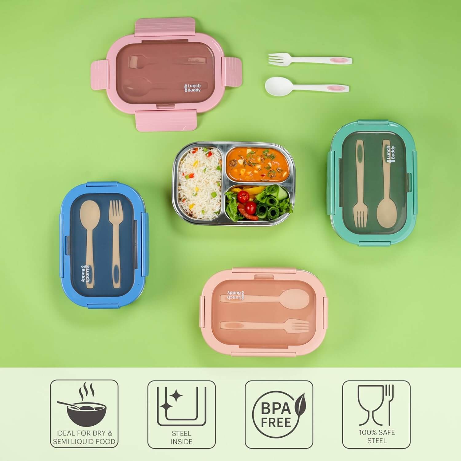 Item Type Name: Lunch Buddy Lunch Box with Plastic Spoon and Fork |100% Food Grade | 925 ml, Blue