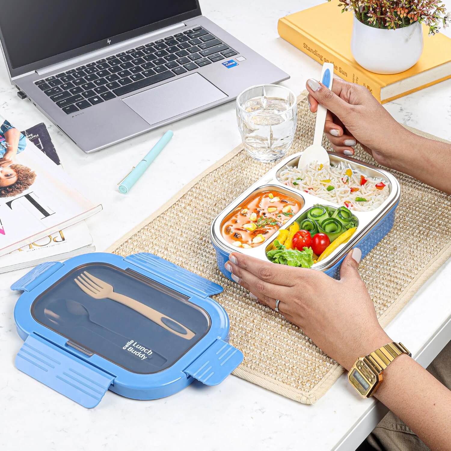 - On-the-Go Essential: Perfect for office, school, picnics, or travel, this tiffin box lets you enjoy homemade meals anytime, anywhere with utmost convenience.