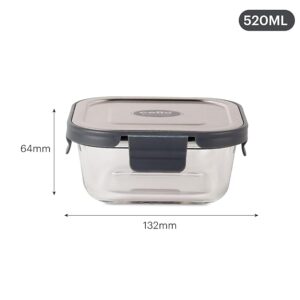 CELLO Steel-O Fresh Square Toughened Glass Container 520ml, Grey and White | Multipurpose Storage | Microwave, Oven, Freezer & Dishwasher Safe | Leakproof Lid | Glass Container For Kitchen, Fridge & Office